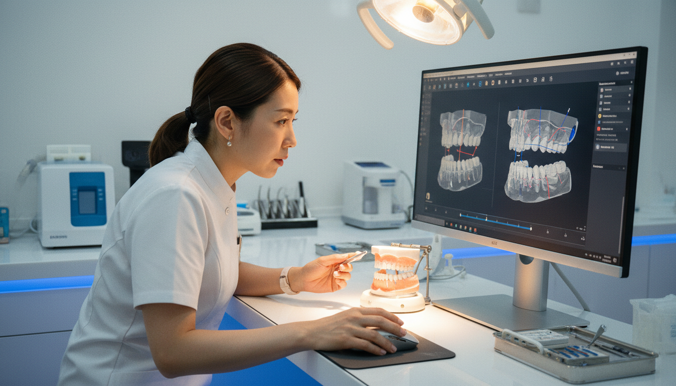 ワイヤー矯正で口元を下げるためには、単に歯を並べるだけでは不十分です。治療の成否を決めるのは、実は「治療設計」にあります。どの歯をどの方向にどれだけ動かすのか、抜歯が必要なのか、それとも別の方法でスペースを確保できるのか・・・これらを0.1mm単位で診断し、計画を立てることが求められます。