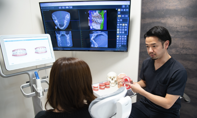 表参道AK歯科・矯正歯科では、経験豊富な院長が最新のデジタル機器を用いて正確に診断し、一人ひとりに最適な治療法を提案します。無料カウンセリングを実施していますので、まずはお気軽にご相談ください。