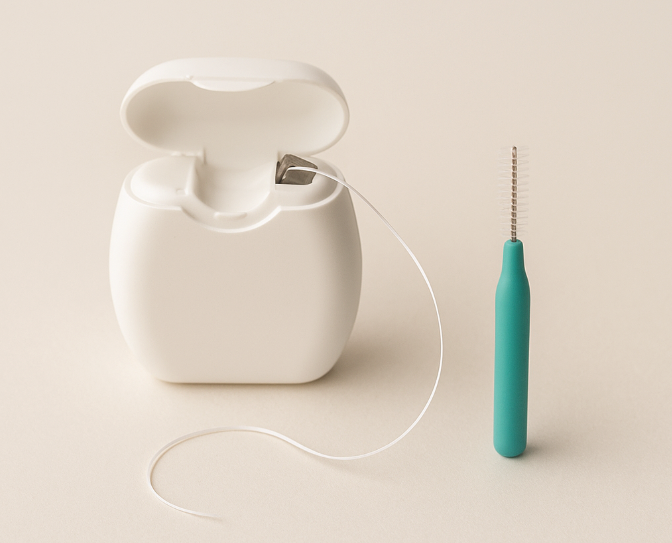 歯ブラシだけでは、インプラントと隣接する歯の間の汚れを完全に除去することは難しいです。そこで活躍するのがデンタルフロスや歯間ブラシです。