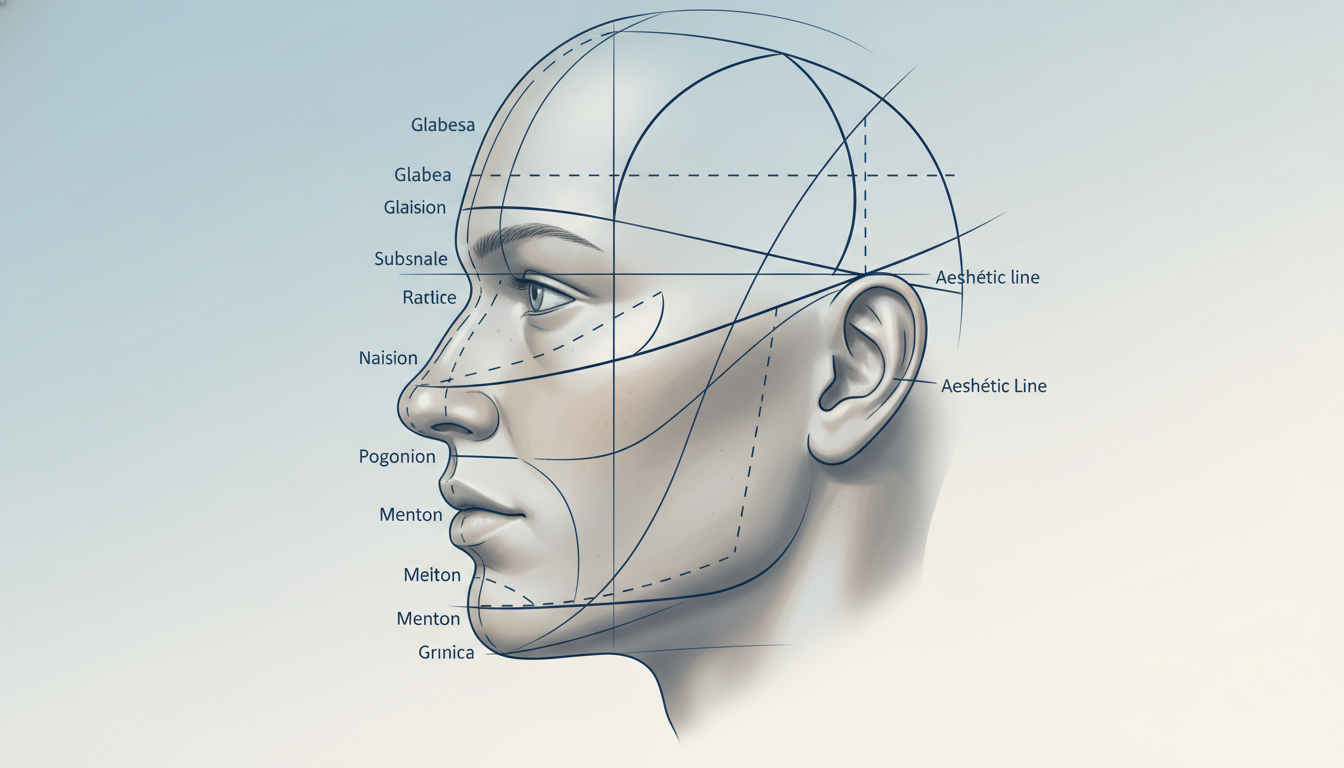 口ゴボの診断でよく用いられるのが「Eライン(エステティックライン)」です。これは鼻先と顎先を結んだ直線で、この線から唇がどの程度前方に出ているかを評価する指標です。