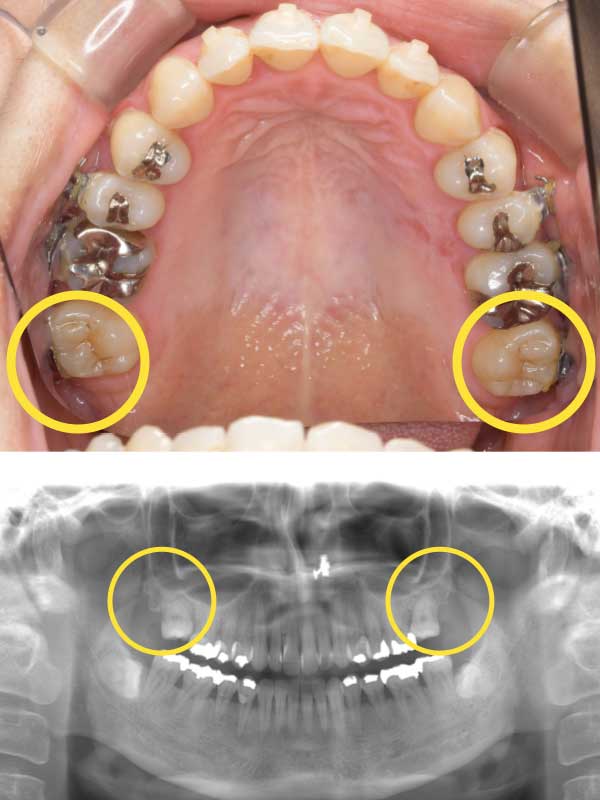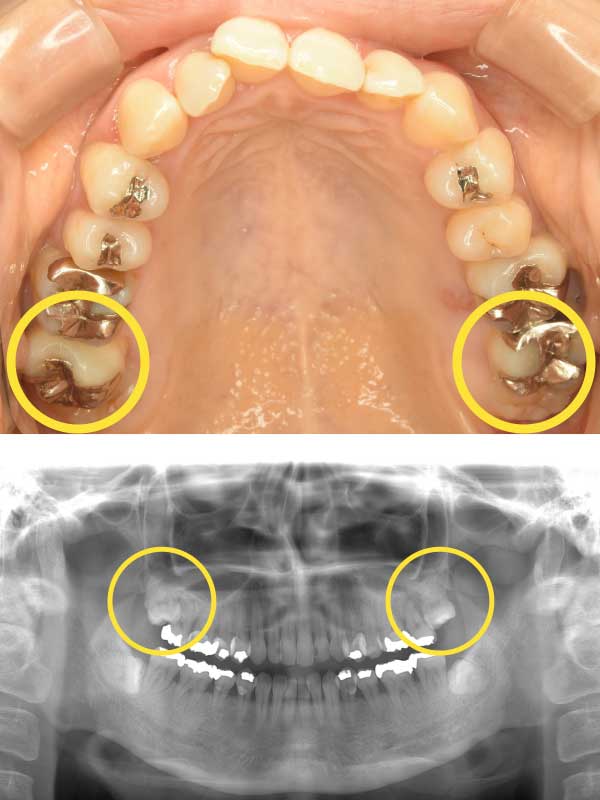 通常、歯を失った場所にはインプラントやブリッジを検討しますが、当院では「親知らずを矯正装置で奥に移動させ、抜けた奥歯のスペースを埋める」という治療を行いました。